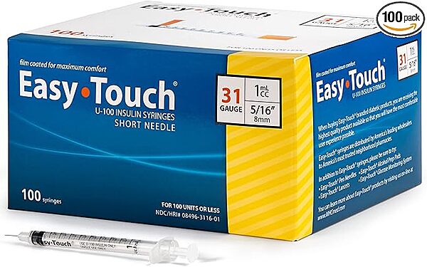 EasyTouch® Insulin Syringes – 31G, 1 cc, 5/16" (8 mm) Needle (631165) -BX