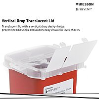 McKesson Prevent® Sharps Container, 0.25 Gallon (1 Quart), Vertical Entry is designed for safe, convenient collection of used sharps in clinical and professional environments where a compact footprint matters. The container features a vertical-entry, translucent lid to support quick visual monitoring of fill level, along with a locking lid intended to help secure contents for handling and transport.