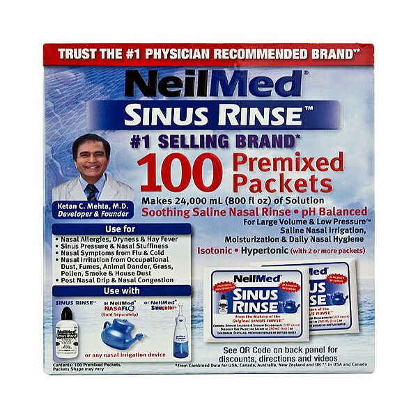 Commonly recommended by healthcare professionals, NeilMed® Sinus Rinse™ packets are used to help relieve symptoms associated with sinus congestion, allergies, colds, nasal dryness, post-nasal drip, and sinus infections, as well as for post-surgical nasal care.
