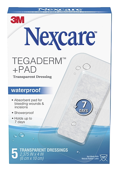 Nexcare™ Tegaderm™ + Pad Transparent Film Dressing provides waterproof wound protection with an integrated absorbent pad to help protect minor wounds while allowing breathability.