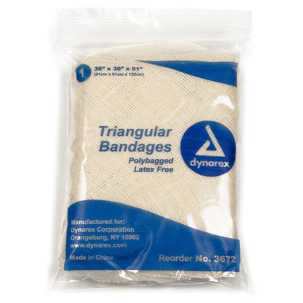 The Dynarex® Triangular Bandage / Arm Sling is a multipurpose first aid essential designed to provide comfortable arm support and immobilization. Commonly used as an arm sling, this triangular bandage can also be folded and applied for splinting, wound dressing, or pressure bandaging in emergency situations.